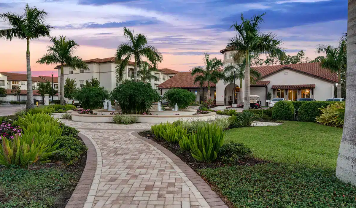 New construction of 308 units of apartment homes in Naples. The complex includes a clubhouse, garage space, coffee bar and lounge, recycling area, fitness room and yoga studio, wellness center, resort style pool with cabanas, outdoor cooking and media areas, fire pit, picnic area with grills, dog park, and cyber café. Apartment amenities include ten foot ceilings, gourmet kitchens, stainless steel sinks, stone tile backsplash in kitchen, granite countertop, kitchen island, and private patios.