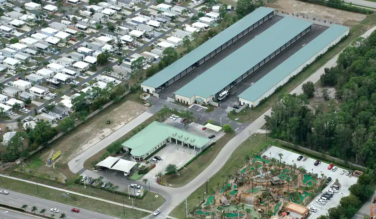 New construction of an RV, boat, and recreational storage facility with 157 bays in Bonita Springs, FL. It consists of 3 buildings totaling 66,949 square feet. All 3 buildings are pre-engineered metal buildings.