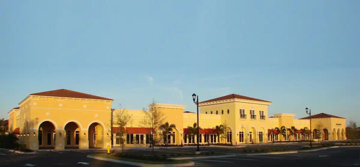 New construction of a building shell and interior build out of a 25,000 square foot retail plaza in Bonita Springs. The plaza includes 10 shell retail units, covered patios, tile and flat roof combination, awnings, parking lot, landscaping, site lighting, and trash enclosure