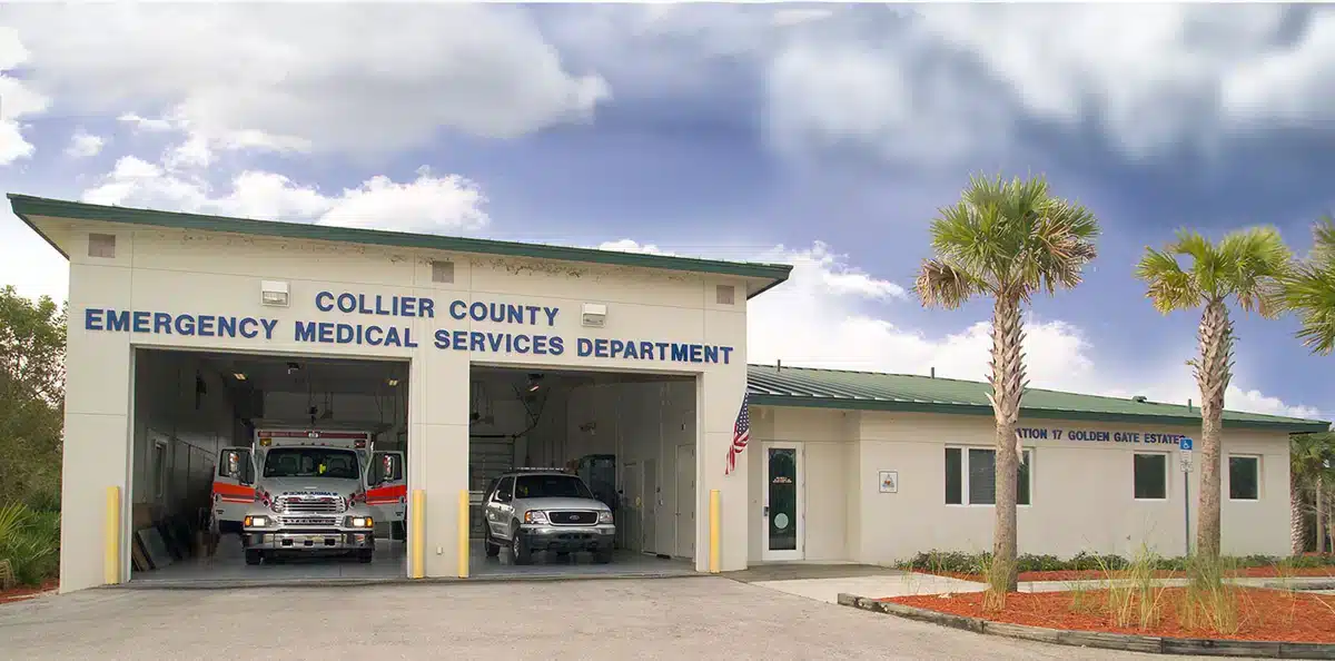 New construction of an emergency medical facility including sleeping quarters, kitchen, meeting rooms, offices, apparatus bay, and fuel station.