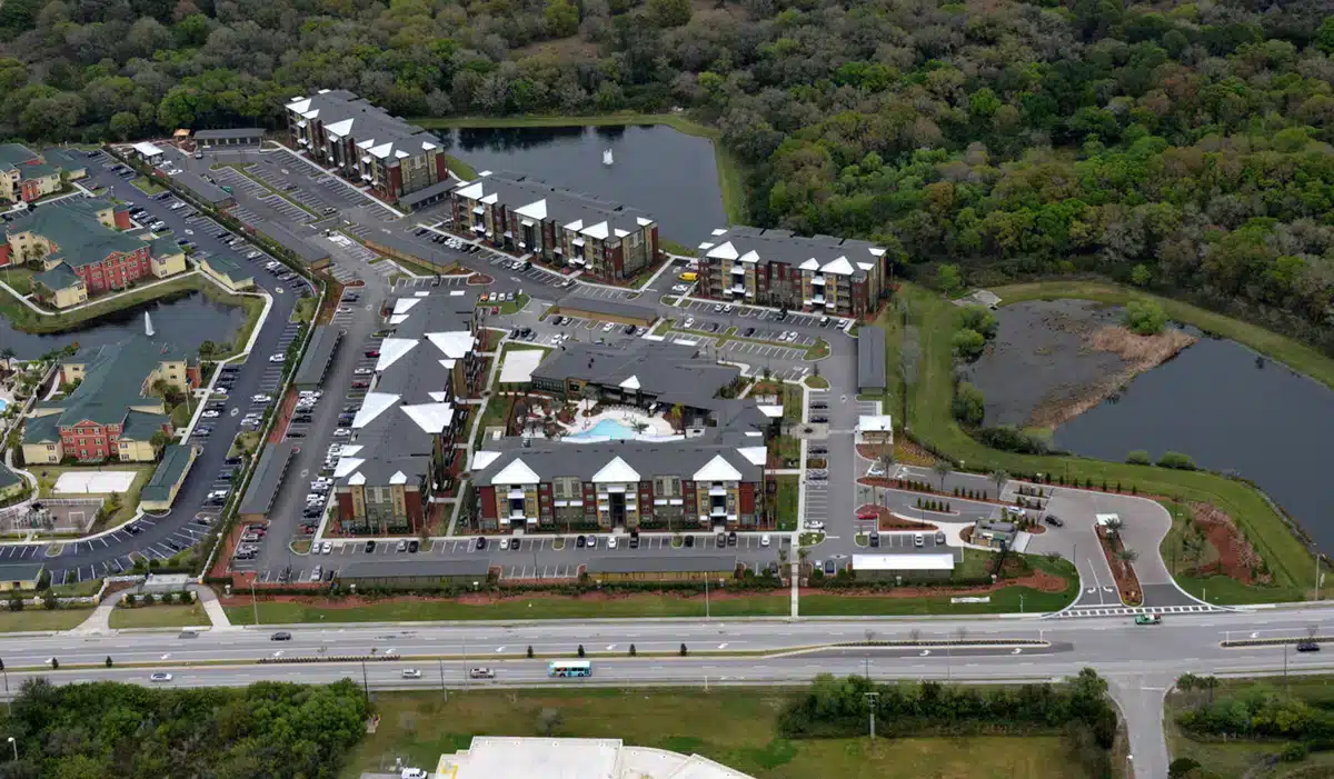 New construction of 256 units in Lake Wood Ranch, Bradenton. Constructed in 6 phases, this 256 unit facility is category 5 hurricane rated. The (5) 4-Story buildings include elevators, resort style beach entry pool, cabanas, outdoor grilling area, large covered clubhouse porch with ping pong tables, outdoor life-size chess set, fully equipped exercise facility, volleyball court, indoor half-court basketball court, media room, and 12 detached garages.