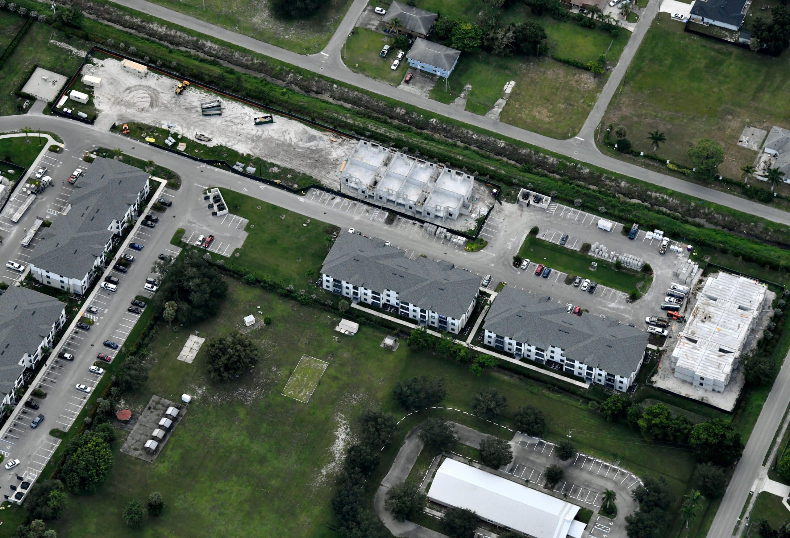 New construction of six garden style apartment buildings consisting of 136 total units and one community center/leasing office, three dumpster enclosures, and all related sitework in Fort Myers.