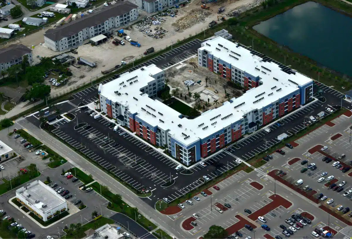New construction of one 4-story apartment building totaling 195 units, integrated clubhouse, one maintenance building, trash Compactor & recycling enclosure, one mail kiosk, swimming pool and deck, sitework, landscaping, hardscapes, and miscellaneous site amenities in Cape Coral.