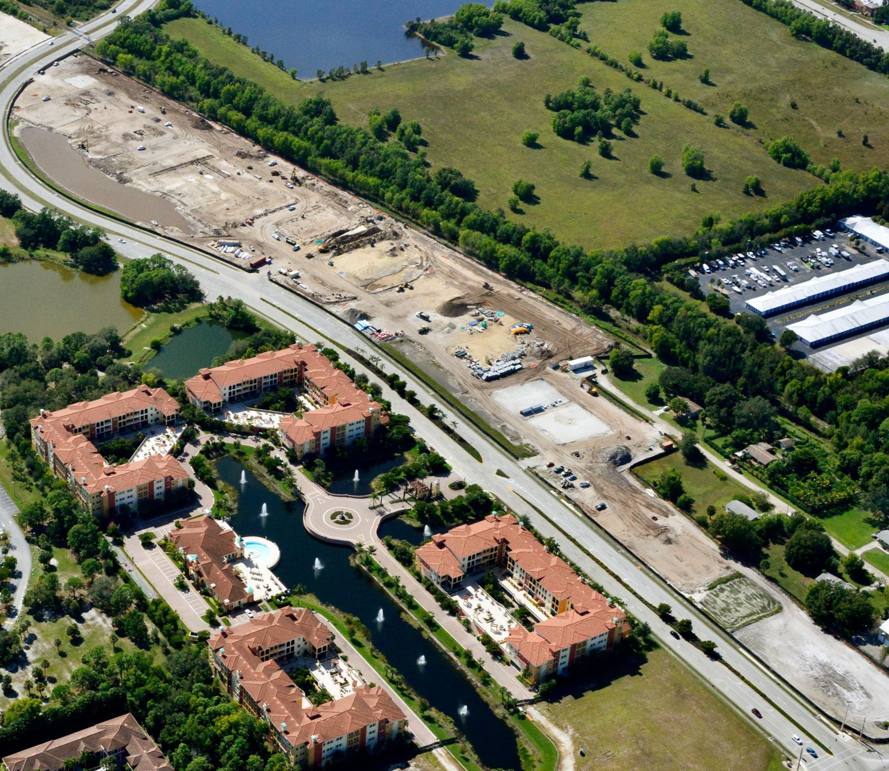 Multifamily residential, luxury rental units, consisting of 3x 4-story buildings (A, B, E), 2x 2-story buildings (C, D), totaling 330 rental units, 3x outparcel retail pad improvements (excluding vertical construction of buildings C1, C2, F), and sitework for the entirety of the 20+ acre site.